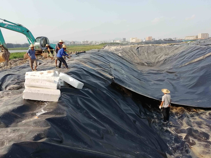 7、施工速度快—防滲膜有很高的靈活性,有多種規格多種鋪設形式滿足不同工程防滲要求,采用熱熔焊接,焊縫強度高,施工方便、快速健康