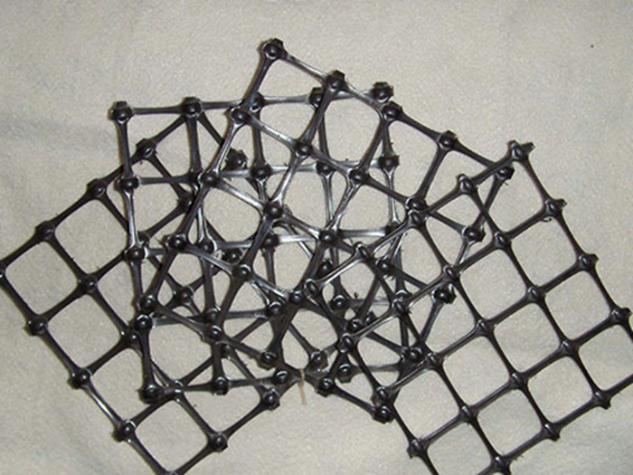 有時配合自粘感壓膠和表面瀝青浸漬處理,使格柵和瀝青路面緊密結合成一體。由于土石料在土工格柵網格內互鎖力增高,它們之間的摩擦系數顯著增大(可達08~10),土工格柵埋入土中的抗拔力,由于格柵與土體間的摩擦咬合力較強而顯著增大,因此它是一種很好的加筋材料。同時土工格柵是一種質量輕,具有一定柔性的塑料平面網材,易于現場裁剪和連接,也可重疊搭接,施工簡便,不需要特殊的施工機械和專業技術人員。